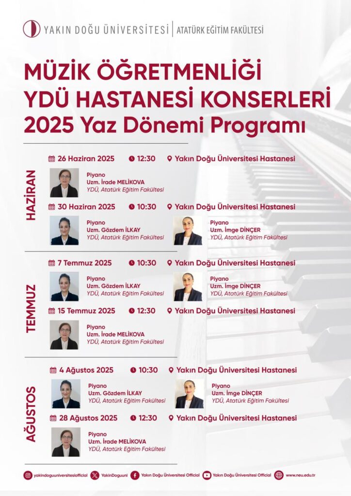 Müzik Öğretmenliği YDÜ Hastanesi Konserleri 2025 Yaz Dönemi Programı