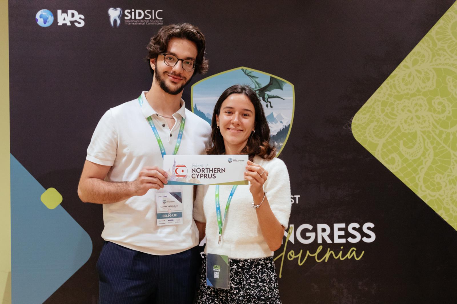 Near East University Faculty of Dentistry students Lara Aybar and Yağız Abacı attended the 71st Annual Congress of the International Association of Dentistry Students (IADS) held in Slovenia as representatives of the Northern Cyprus Association of Dentistry Students (NCADS). Representing dentistry students studying in Northern Cyprus, Lara Aybar and Yağız Abacı discussed current developments and future educational opportunities in the field of dentistry with representatives from 18 countries.