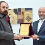 Following the presentation of the plaque, the Founding Rector of the Near East University, Dr. Suat İ. Günsel, the former president of the parliament, Sibel Siber, Chairman of the Board of Trustees of the Near East University Assoc. Prof. Dr. İrfan S. Günsel, General Manager of Near East Bank Selami Kacamak and Near East Bank Deputy General Manager, Enver Haskasap, cut the ribbon of the exhibition and opened the exhibition. The event ended with a visit to the exhibition and a reception.