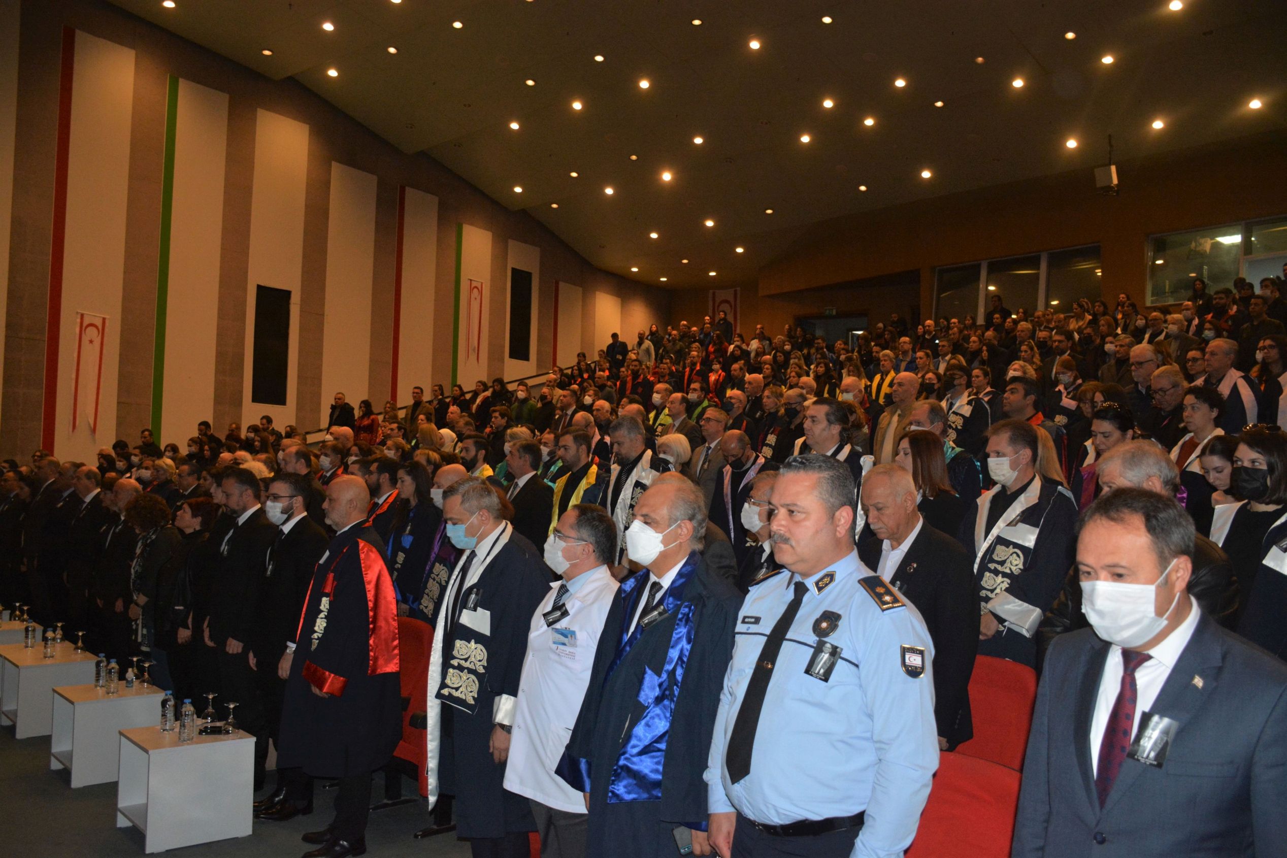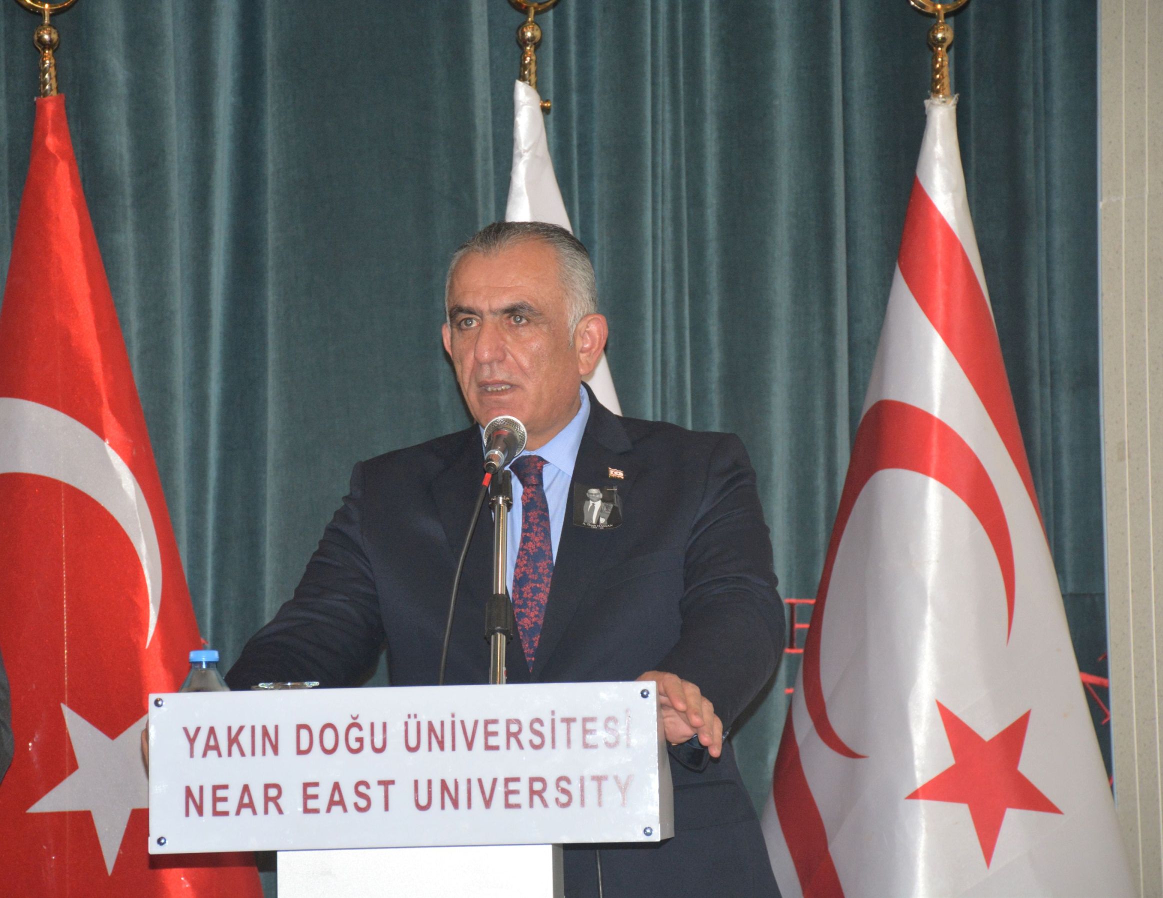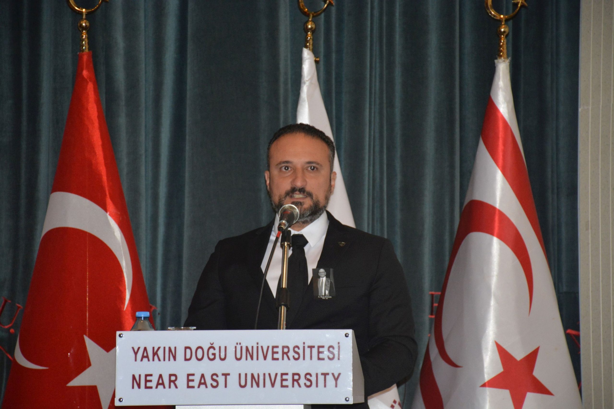 At the ceremony President Ersin Tatar, Minister of National Education Nazım Çavuşoğlu, Chairman of the Board of Trustees of the Near East Enterprises Prof. Dr. İrfan Suat Günsel, Near East University Faculty of Law, History of Law Research Assistant Erkut Ziya Sivrikaya delivered speeches and Süleyman Gündüz delivered a speech on behalf of the students of Near East University.