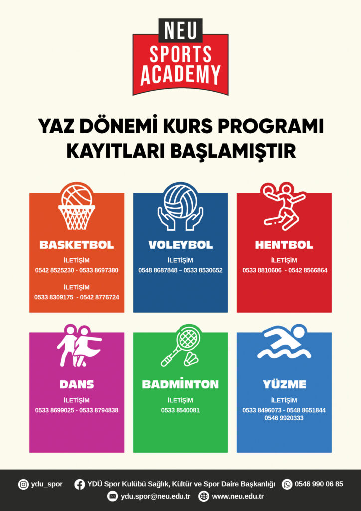 NEU Sports Academy Yaz Dönemi Kurs Programı Kayıtları Başladı