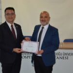 At the end of the symposium, Near East University Rector Prof. Dr. Tamer Şanlıdağ presented a certificate of appreciation to Rector of Izmir Institute of Technology Prof. Dr. Yusuf Baran, sociologist and writer Prof. Dr. Besim Dellaloğlu and Akdeniz University Lecturer Prof. Dr. Gamze Tanrıöver.