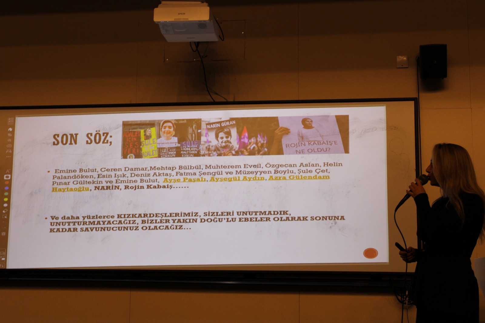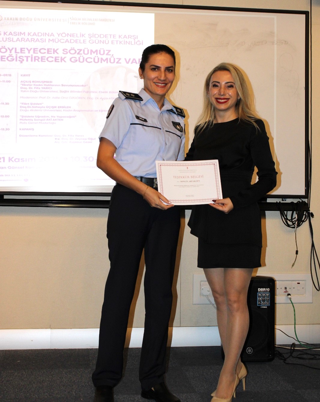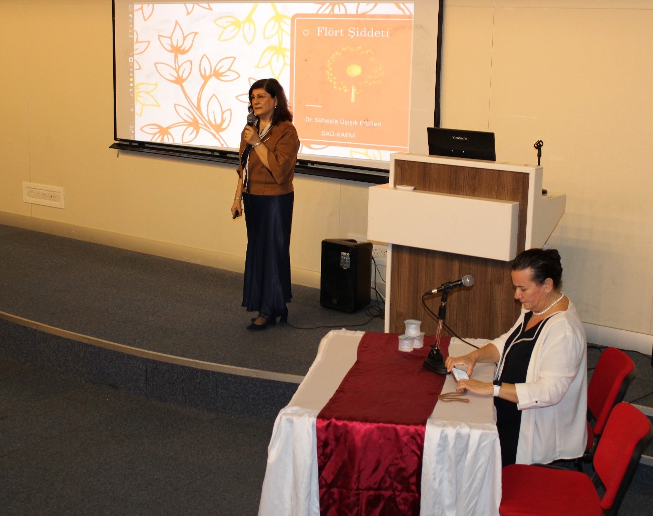 Etkinlikte konuşmacı olarak yer alan; Doğu Akdeniz Üniversitesi Kadın Araştırmaları ve Eğitim Merkezi Başkanı Doç. Dr. Süheyla Üçışık Erbilen ile Polis Genel Müdürlüğü Müfettişi Songül Aki Akten ise katılımcılarla dikkat çeken bilgiler paylaştı.