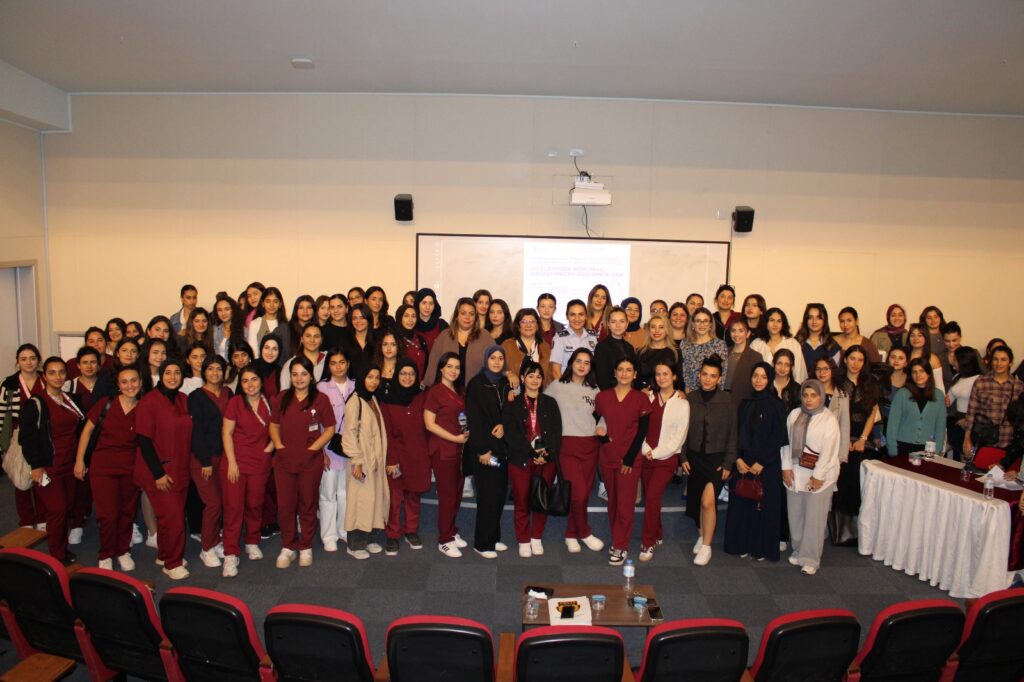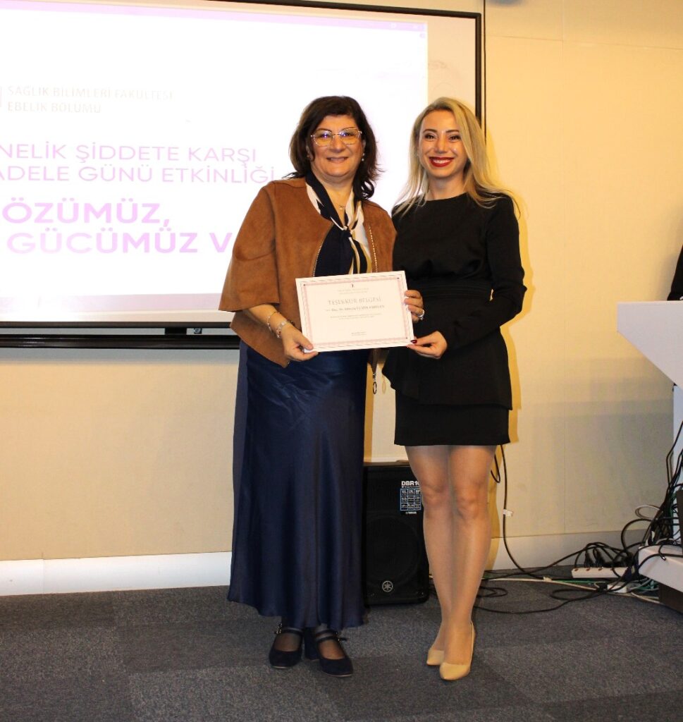 Yoğun katılımla gerçekleşen etkinliğin açılış konuşmasını; Yakın Doğu Üniversitesi Sağlık Bilimleri Fakültesi Ebelik Bölüm Başkanı Doç. Dr. Filiz Yarıcı yaptı. Doç. Dr. Filiz Yarıcı, “Ebeler Kadın Haklarının Savunucusudur” başlıklı sunumunda ebelerin yalnızca doğum süreçlerinde değil, kadınların hayatının her döneminde hak savunucusu olduğunu vurguladı. “Kadın ve yenidoğan sağlığının iyileştirilmesi ve korunmasında, dolayısıyla toplum sağlığının güçlendirilmesinde önemli bir role sahip olan ebeler; kadınla en yoğun iletişim kuran ve ona en yakın duran sağlık profesyonelleridir” ifadelerini kullanan Doç. Dr. Filiz Yarıcı; kadına yönelik şiddetin tespiti, önlenmesi ve doğru yönlendirilmesinde ebelerin kritik bir rol üstlendiğini belirterek sağlık profesyonellerinin bu alandaki sorumluluğunun altını çizdi.