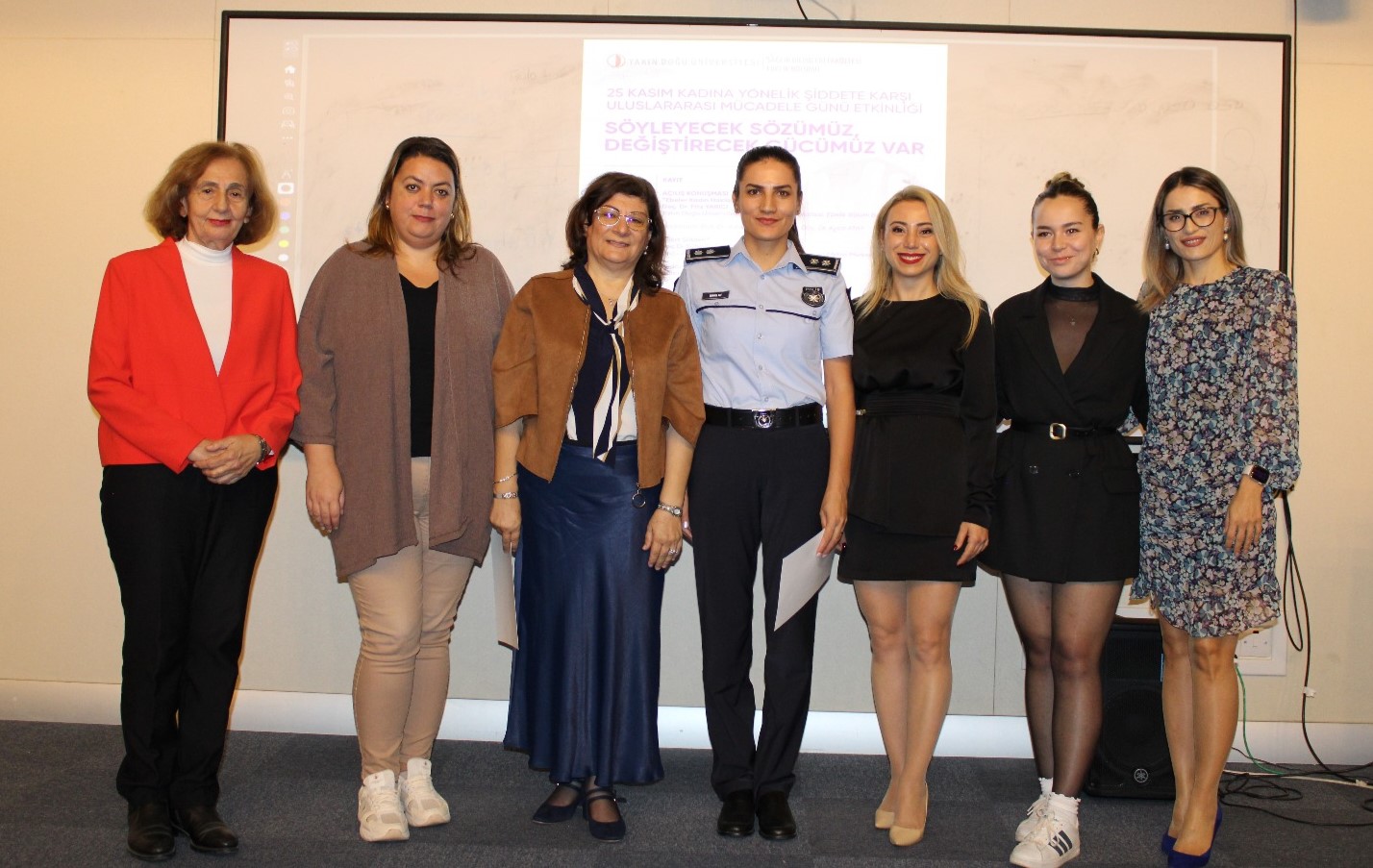 Yakın Doğu Üniversitesi’nde gerçekleştirilen “25 Kasım Kadına Yönelik Şiddete Karşı Uluslararası Mücadele Günü” etkinliğinde bir araya gelen akademisyenler ve uzmanlar, gençlere ve kadınlara yönelik şiddetin farklı boyutlarına dikkat çekerek önemli mesajlar verdi.