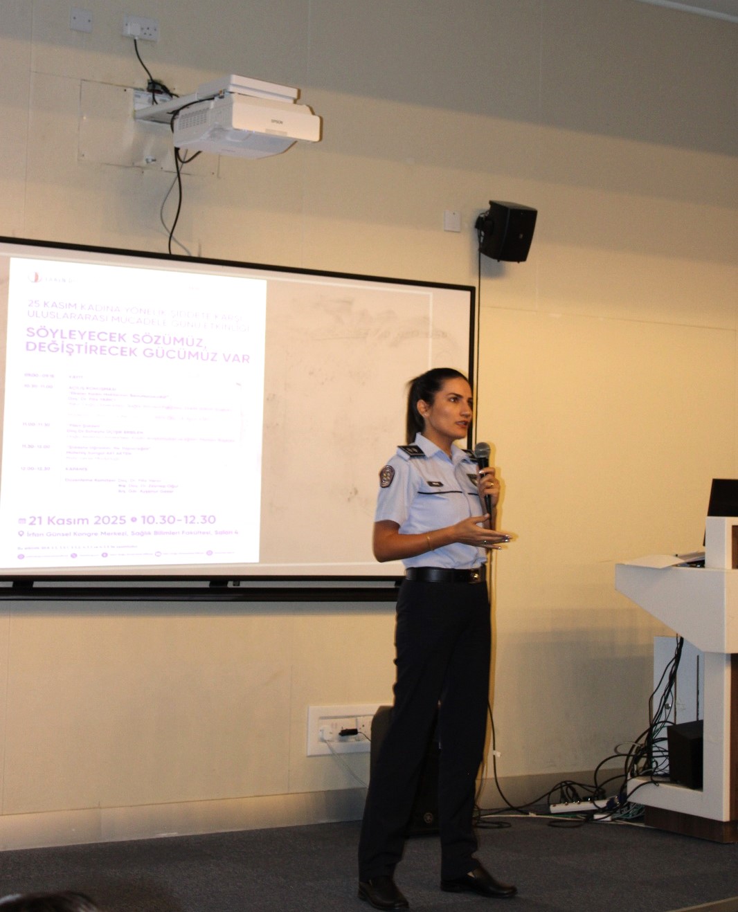 Polis Genel Müdürlüğü Müfettişi Songül Aki Akten, “Şiddete Uğradım, Ne Yapacağım?” başlıklı sunumunda, şiddete maruz kalan kadınların başvurabilecekleri yasal yolları ve güvenlik adımlarını kapsamlı bir şekilde aktardı. Akten; 155 Polis İmdat, Alo 183 Sosyal Destek ve Şiddetle Mücadele Hattı, savcılıklar, kadın sığınma evleri ve sosyal hizmet birimleri gibi başvuru noktalarını detaylı bir şekilde anlatarak, bu süreçlerin hiçbir koşulda zorlaştırılamayacağını vurguladı. Ayrıca, mağdurun korunmasının yasal bir zorunluluk olduğunu hatırlatarak, şiddete uğrayan herkesin güvenle başvuru yapabileceğini ifade etti.