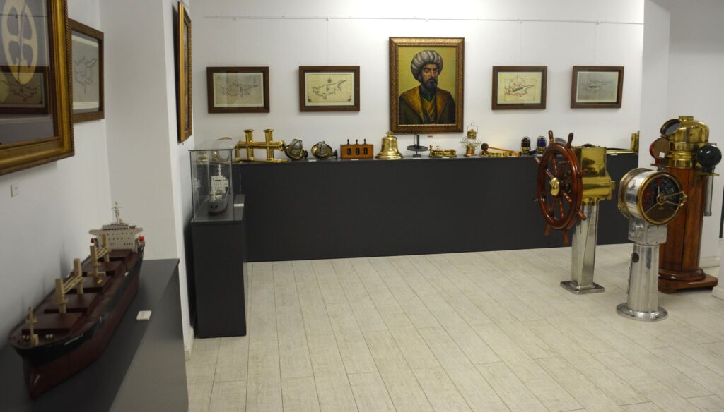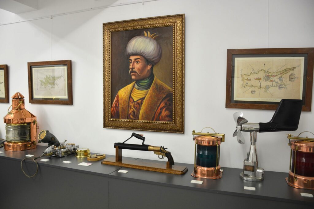 One of the highlights of the collection is a historical map transferred onto ceramics. Created by a Venetian cartographer, this work depicts the Ottoman conquest of Cyprus. This map, which includes details of the Famagusta Kaleiçi region, reflects the maritime strategies of the period. A ceramic copy of Piri Reis’s famous map is also on display in the museum. Although drawn in the 15th century without any modern technology, it is considered one of the closest depictions to modern satellite imagery. Additionally, oil paintings by Cumhur Koraltürk and Refik Aziz Türk, depicting maritime history, add further value to the collection.