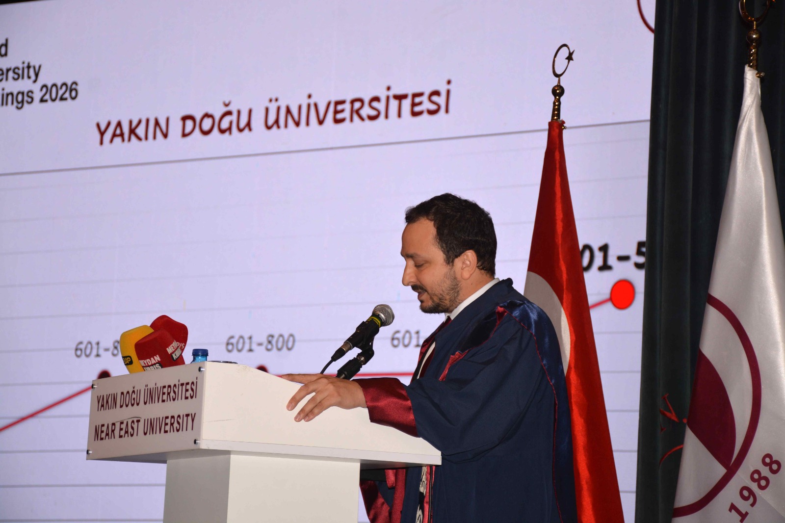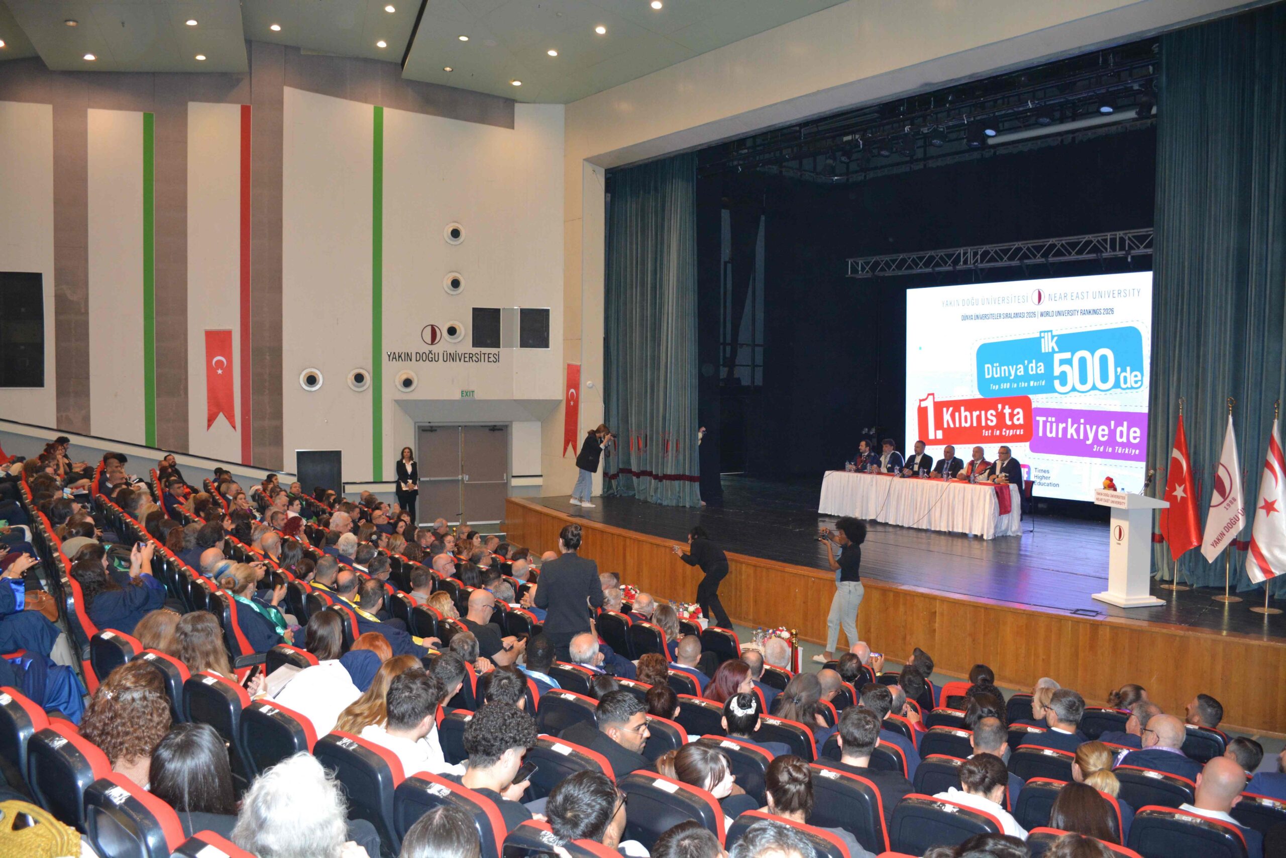 Dünyanın en saygın yükseköğretim derecelendirme kuruluşlarından Londra merkezli Times Higher Education (THE) tarafından yayımlanan “Dünya Üniversiteler Sıralaması 2026- World University Rankings 2026” sonuçlarına göre Yakın Doğu Üniversitesi, tarihi bir başarıya imza atarak dünyanın en iyi ilk 500 üniversitesi arasında yer aldı. Yakın Doğu Üniversitesi Atatürk Kültür ve Kongre Merkezi’nde düzenlenen basın toplantısı ile bu tarihi başarı kamuoyuyla paylaşıldı.