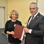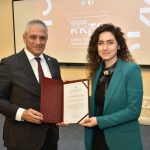 After the speeches, Rector of Near East University Prof. Dr. Ümit Hassan and Vice-Rector of Gazi University Prof. Dr. Yaşar Aydemir mutually presented remembrances. Subsequently, the Minister of Economy and Energy Hasan Taçoy presented the certificates of appreciation to the artists who contributed to the group exhibition. Then the exhibition ribbon was cut. The exhibition will be open until January 10, 2020, in the exhibition hall of İrfan Günsel Congress Center.