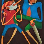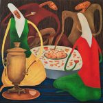 The artworks made by Kazakh painter Orazbek Yesenbayev with oil painting technique have been inspired by daily life. The artist reflected the events of daily life on the canvas by combining them with his philosophical and artistic style in his artworks.