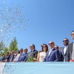 The ground breaking ceremony began with standing a moment in silence and followed by national anthem. Then, a section of valuable art-works was presented through Cine-Vision. Near East University Rector Professor Ümit Hassan, Near East University Board of Trustees Chairman Associate Professor İrfan Günsel, Gagauzia Vice President Vitali Ulah, TURKSOY Secretary General Düzen Kaseinov, TRNC National Education and Culture Minister Cemal Özyiğit, TRNC Prime Minister Tufan Erhürman and TRNC President Mustafa Akıncı delivered a speech respectively. Following the opening remarks, plaque presentations were realized and then 'lay the foundation button" was pressed.