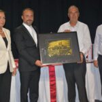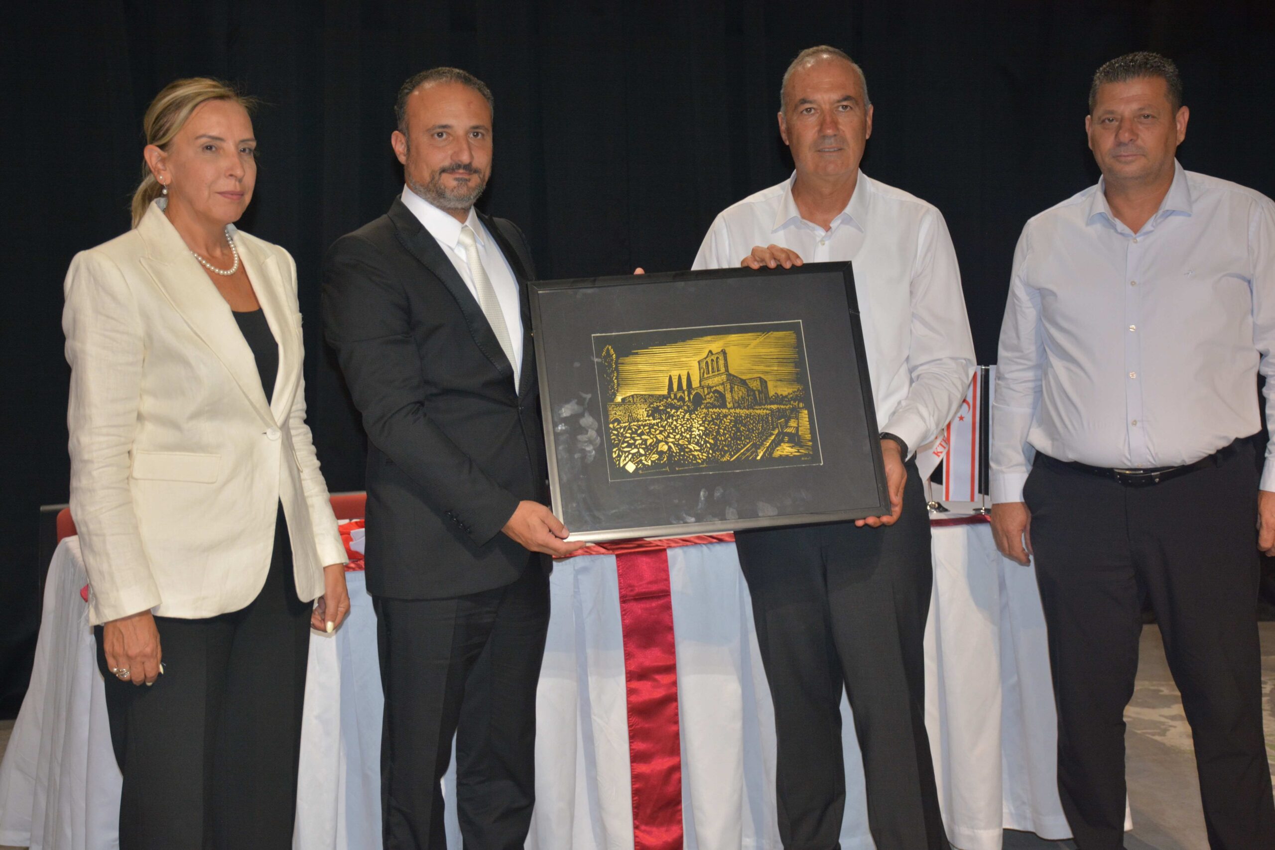 Following the protocol signing ceremony, KTFF President Hasan Sertoğlu presented Prof. Dr. İrfan Suat Günsel, Chairman of the Near East University Board of Trustees, with a uniform exclusively produced by Puma for the TRNC National Team. Prof. Dr. İrfan Suat Günsel, in turn, presented Hasan Sertoğlu with a gold-leaf print titled “Bellapais,” created by artist Raif Kızıl exclusively for the Cyprus Museum of Modern Art.