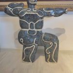 His work “Man with the Carpet” depicts a stone found in Central Asia. The artist emphasizes with this sculpture that rock petroglyphs were used in the patterns of national carpets, which he designed as a reflection of the legacy of the ancient Turks revealed through archaeological excavations.