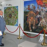 Today, we are going to see distinguished artworks reflecting aesthetic understandings and plastic values of Kyrgyz fine arts. The talented People’s Artists of Kyrgyzstan placed figurative elements in their paintings so aesthetically and masterly. We are going to see the creativity of very natural synthesis in which all balance elements and color, shades, lines, pattern designs are in a harmony that fed by folkloric values” noted he. Touching upon the historical process of the Kyrgyz art of painting, Professor Hassan said that the artists of Kyrgyzstan added great value to the art of painting by creating very distinguished artworks including very rare works and the most contemporary examples.