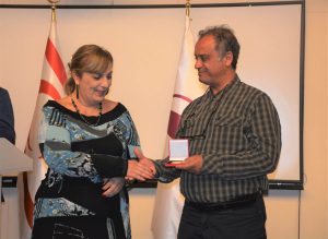 After the speeches, Nino Mgenashvili presented the International Federation of Photographic Art (FIAP) Gold Medal Award to the Turkish Northern Cyprus Turkish artist Mehmet Gökyiğit with his photograph titled “Paramount”. Mgenashvili also presented the plaque of appreciation to the Near East University and Cyprus Museum of Modern Arts for their contributions to art. Prof. Dr. Tamer Şanlıdağ accepted the plaque on behalf of the universty and the museum. Photographers Cristakis Christou, Romos Kotsonis and George Yiallouris also received the awards they won as part of the discussion at the Near East University.