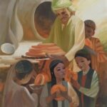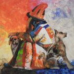 As in many societies, bread has a very important place in Uzbek culture. In his work titled “The Oven”, the artist depicts the production process of Uzbek Pides, which are the symbol of goodness and prosperity. In his work titled “Evening”, he describes rural village life. On the other hand, “The Vagrants” depicts a nomadic man befriending two dogs. The artist gives the message that people should focus more on positive moments in his work “Peasant-Pisces”.