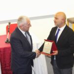 Near East University Rector Prof. Tamer Şanlıdağ presented a plaque of appreciation to Retired Ambassador Ömer Önhon after the event, .