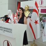 Erhürman şöyle devam etti: “Kıbrıs Türk halkı hem biraz zamanın içinde hem biraz zamanın dışında. Kıbrıs Türk halkı Ahmet Hamdi gibi söylerseniz ne zamanın içinde ne zamanın dışında. Yekpare geniş bir anın parçalanmaz akışında macerasına devam ediyor. Ama bu macera sanatla, yetkin sanatçılarla devam edeceğine göre bu yolculuk güçlü demektir ve rüyası eşyaya sinecek. Biz de o eşyalarla yarattıklarımızla, ürettiklerimizle bu topraklarda var olmaya devam edeceğiz demektir. Yürekten Yakın Doğu Üniversitesini ve Vedia Okutan’ı kutluyorum.