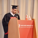 Mezun öğrenciler adına konuşan, Fakülte birincisi Görsel İletişim ve Tasarım Bölümü mezunu Tarık Ferik ise hiç unutamayacağı güzel, verimli anlarının olduğunu dile getirerek, öğretim elemanları ve arkadaşlarına sonsuz başarılar dilediğini ifade etti.