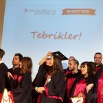 Konuşmaların ardından öğrencilere diplomaları verilirken, tören geleneksel kep atma etkinliğiyle son buldu.