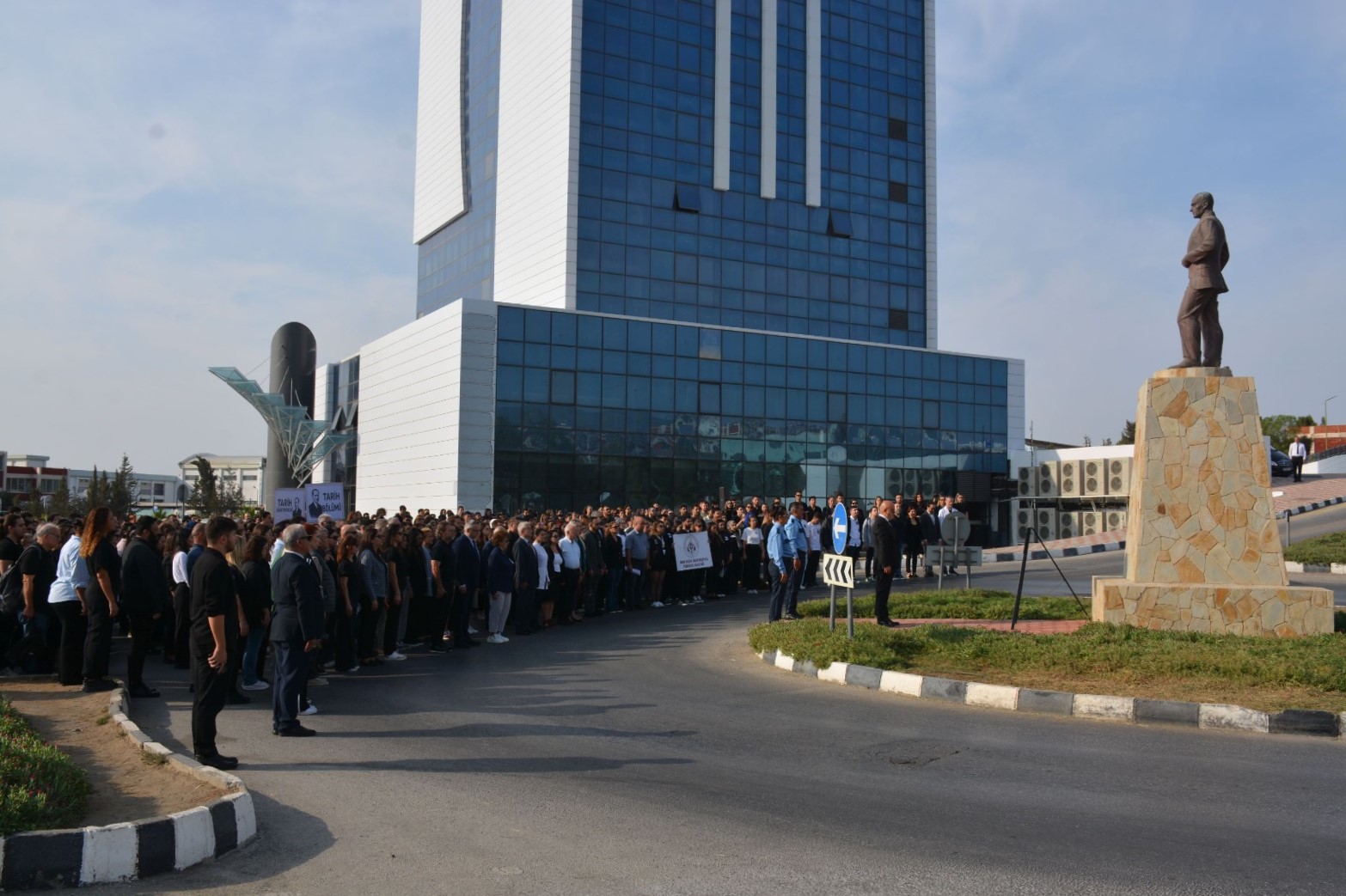 Ada genelinde olduğu gibi, Yakın Doğu Üniversitesi Kampüsü’nde de saatler 09.05’i gösterdiğinde hayat durdu. Siren sesiyle birlikte, akademisyenler, öğrenciler ve Yakın Doğu Oluşumu çalışanları Büyük Önder’in aziz hatırası önünde iki dakikalık saygı duruşunda bulundu. Ardından İstiklal Marşı okundu. Kampüs boyunca yankılanan marş sesleri, Atatürk’e duyulan derin sevgi, saygı ve bağlılığı bir kez daha yüreklerde hissettirdi. Kıbrıs Modern Sanat Müzesi’nin