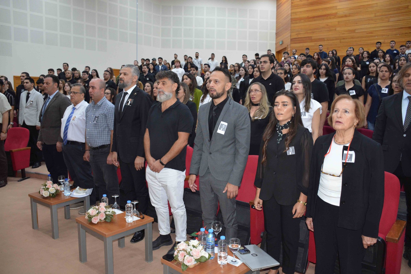 Yakın Doğu Üniversitesi öğrencileri ve akademisyenleri, Büyük Önder Mustafa Kemal Atatürk’ü aramızdan ayrılışının 87’inci yılında saygı, sevgi ve özlemle andı. Tören, “Büyük Önder Gazi Mustafa Kemal Atatürk’ü; sonsuz minnet, saygı ve özlemle anmak üzere bir aradayız” anonsu ile başladı. Duygusal bir atmosferde devam eden törende, Atatürk’ün yalnızca bir lider değil; bir milletin yeniden doğuşunun, çağdaşlaşma ve bağımsızlık mücadelesinin simgesi olduğu vurgulandı.