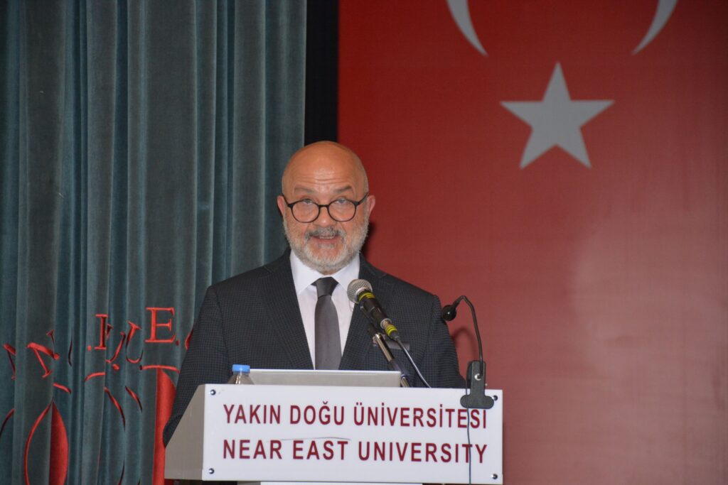 “Bugün burada birlikte düşünmek ve geleceği birlikte güçlendirmek için bir aradayız” sözleri ile konuşmasına başlayan Yakın Doğu Üniversitesi Rektörü Prof. Dr. Tamer Şanlıdağ, “Kadının toplumsal hayattaki gücünü konuşmak, aslında daha adil, daha üretken ve daha sürdürülebilir bir dünyanın nasıl mümkün olabileceğini konuşmaktır” dedi. Yakın Doğu Üniversitesi’nin kadınların toplumdaki yerini her zaman ön planda tuttuğunu belirten Prof. Dr. Şanlıdağ, üniversitenin akademik kadrosunun yarısının, idari kadrosunun ise yüzde 67’sinin kadınlardan oluştuğunu ifade etti. Bu verilerin çok net bir gerçeği ortaya koyduğunu dile getiren Prof. Dr. Şanlıdağ, “Yakın Doğu Üniversitesi’nde gelecek; cinsiyet üzerinden değil, liyakat, emek ve yetkinlik üzerinden inşa ediliyor. Çünkü biliyoruz ki kadının güçlendiği bir toplumda bilim daha üretken, kurumlar daha adil, şehirler daha yaşanabilir ve gelecek çok daha umutlu olur” dedi.