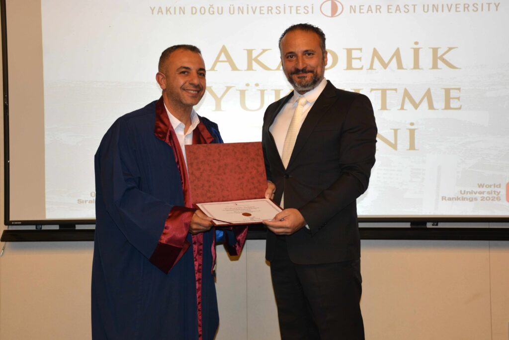 Dünyanın ilk 500 üniversitesi arasında yer alan Yakın Doğu Üniversitesi’nde 2025 yılında akademik yükseltme alan 40 akademisyen, belgelerini düzenlenen törenle aldı. Yoğun katılımla gerçekleşen törende YÖK Denetleme Kurulu Üyesi Prof. Dr. Mustafa Kurt, Yakın Doğu Üniversitesi’ni ilk kez ziyaret ettiğini belirterek “Bir Türk olarak gurur duydum” ifadelerini kullandı.