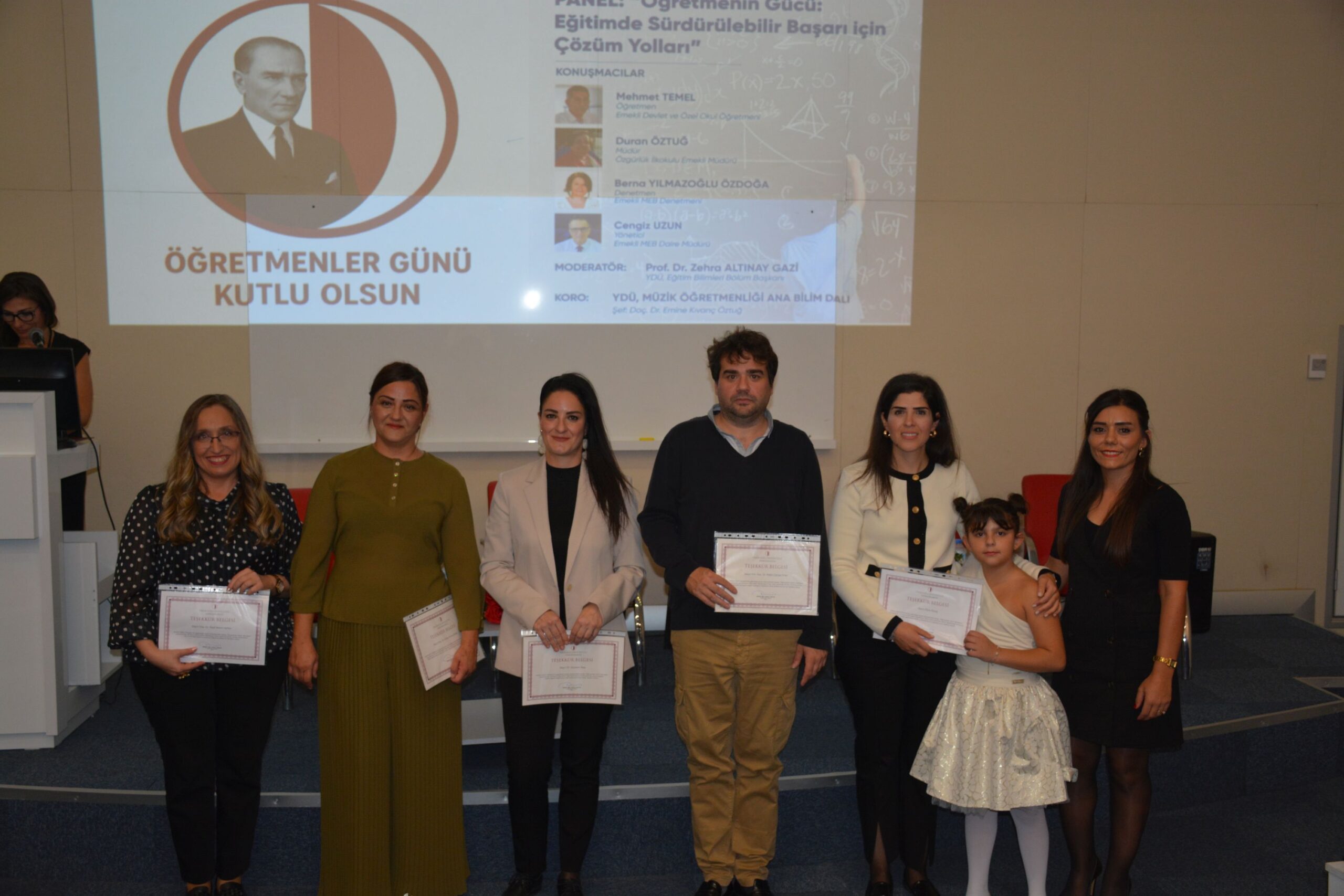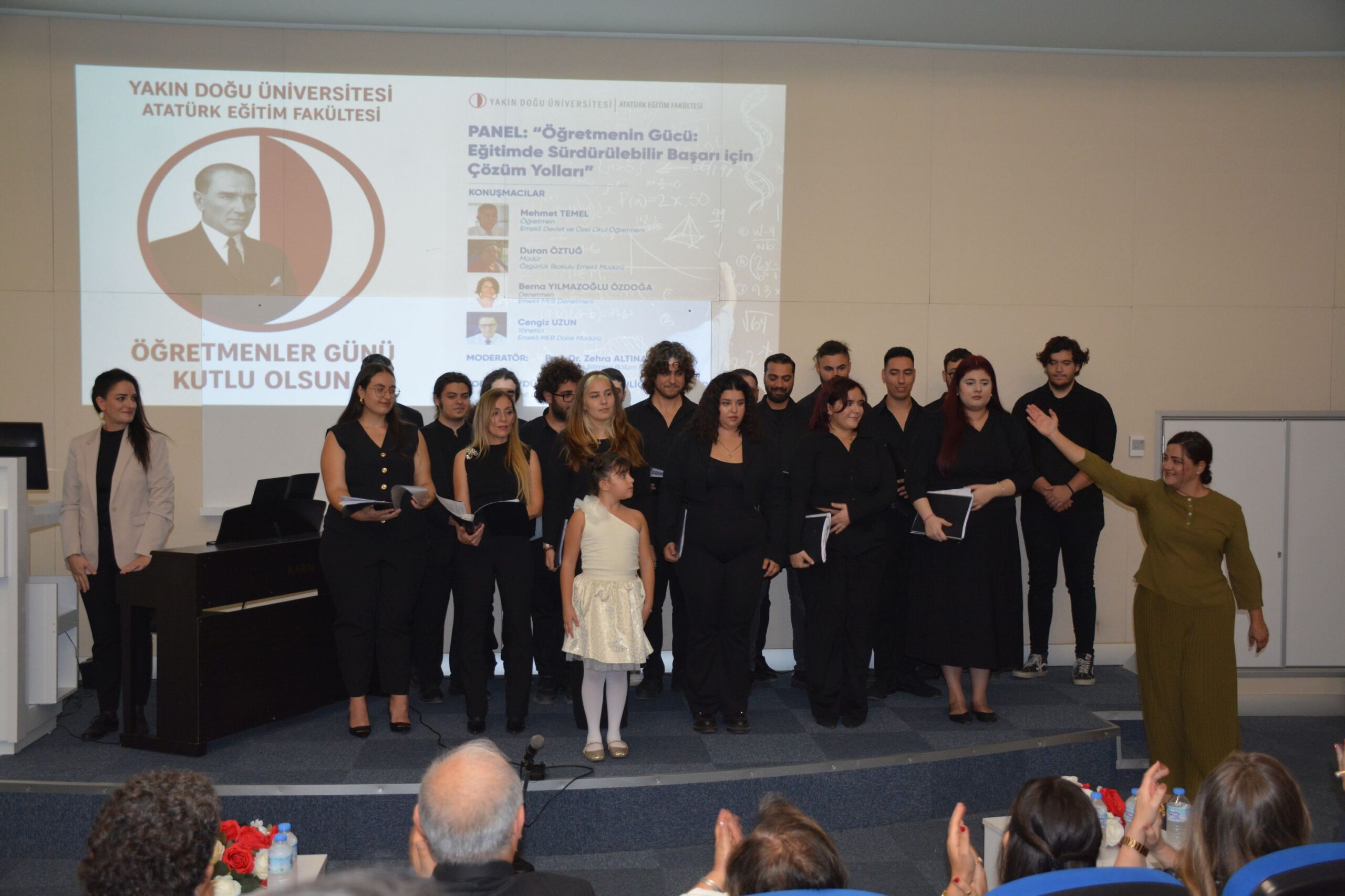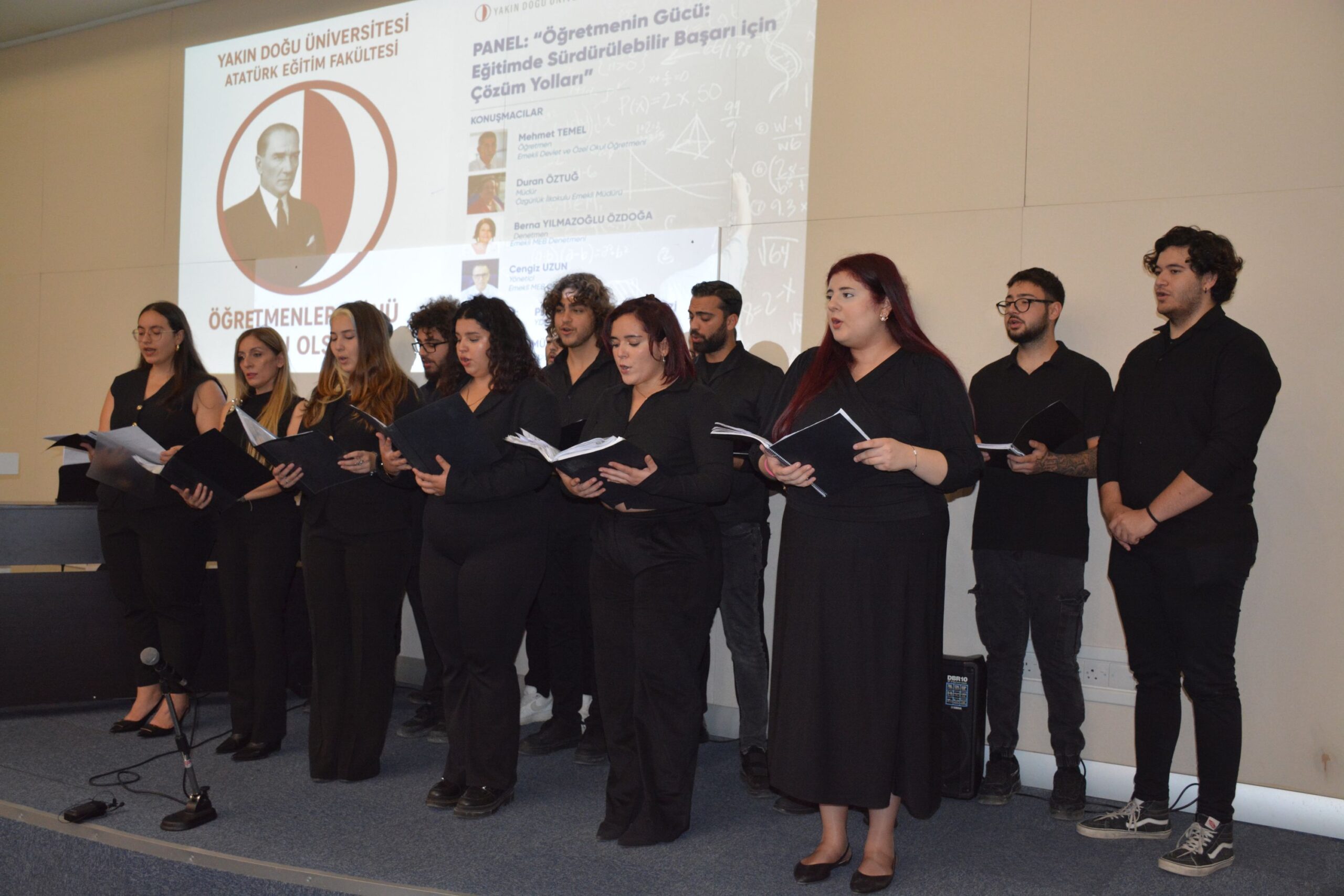 Yakın Doğu Üniversitesi’nde öğretmenler gününe özel bestelenen “Atatürk Eğitim Fakültesi Öğretmen Marşı” ilk kez “Öğretmenin Gücü: Eğitimde Sürdürülebilir Başarı için Çözüm Yolları” panelinde seslendirildi. Deneyimli isimlerin katkılarıyla gerçekleştirilen panelde okunan marş büyük beğeni topladı.