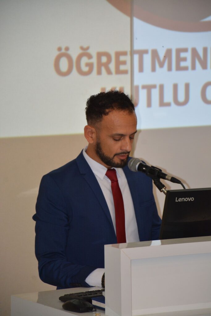 Yakın Doğu Üniversitesi’nin Dünya Üniversiteler Sıralamasında ilk 500’e girdiğini anımsatarak konuşmasına başlayan Yakın Doğu Üniversitesi Atatürk Eğitim Fakültesi Dekanı Prof. D. Umut Akçıl ise; “Bu başarıda emeği olan akademsiyenlerimiz ve öğrencilerimiz ile burada olmaktan büyük bir mutluluk duyuyoruz” dedi. İnsanlığın en eski ve en kutsal eylemlerinden biri olan öğretme çabasını selamlamak için toplandıklarını belirten Prof. Dr. Umut Akçıl, “Öğretmenlik yalnızca bir meslek değil bilginin ateşini merakın kıvılcımını ve insan olmanın erdemini kuşaktan kuşağa taşıyan bir layık medeniyet yürüyüşüdür” dedi. “Öğretmenlik, insanın insana bıraktığı en derin izdir” diyen Prof. Dr. Akçıl, toplumların kaderinin sınıflarda yazıldığını, geleceğin mimarlarının ise bugün aralarında bulunan öğretmenler olduğunu ifade etti.