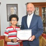 Yakındoğu Koleji giriş sınavında başarı bursu elde eden 28 öğrenci, Kurucu Rektör Dr. Suat İ. GÜNSEL’i Rektörlük binasında ziyaret etti.