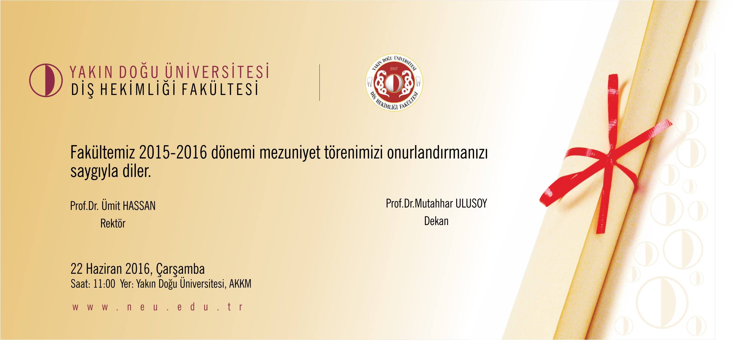 YDÜ, Diş Hekimliği Fakültesi 2015-2016 Eğitim-Öğretim Yılı Mezuniyet Töreni