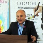 Prof. Dr. Uğurcan AKYÜZ, konuşmasında sanat, eğitim ve akademi ilişkisini tarihsel süreç içerisinde anlatarak, alanla ilgili kuramları açıkladıktan sonra farklı ülkelerden uygulama örnekleri sunmuştur. Akyüz konuşmasını günümüzde yaygın olarak kullanılan sanat ve eğitimle ilgili iki fıkra ile destekleyerek etkili bir sunum gerçekleştirmiş, tüm katılımcılardan büyük takdir toplamıştır.
