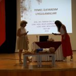 Genel ilk yardım bilgileri, hasta ve yaralının olay yerinin değerlendirilmesi, kanama, yaralanma, yanık, donma ve sıcak çarpmalarında, kırık, çıkık ve burkulmalarda, bilinç bozukluklarında, bayılmalarda, havale, zehirlenmelerde, hayvan ısırmalarında, göz, kulak ve buruna yabancı cisim kaçması gibi durumlarda, boğulmalarda ilk yardımın nasıl yapılacağı ve temel yaşam desteği konusunda bilgileri içeren eğitim, teknik ve görsel bilgilerden sonra uygulamalı olarak devam etti.