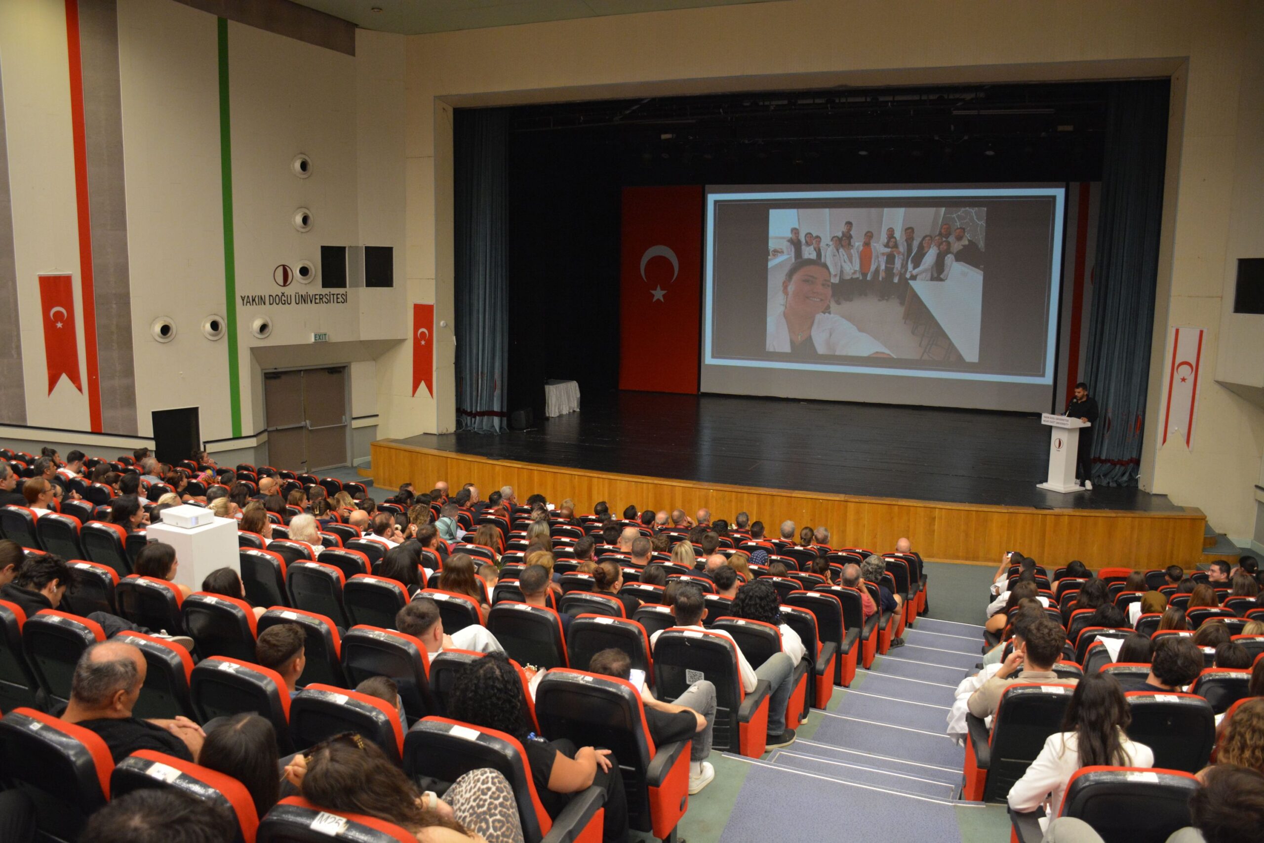 The ceremony began with a moment of silence and the singing of the Turkish National Anthem, followed by a promotional film from Near East University. The ceremony, which was well-attended by academics, students, and families, was also attended by Prof. Dr. Hüseyin Eseceli, Dean of the Faculty of Health Sciences of Bandırma Onyedi Eylül University.